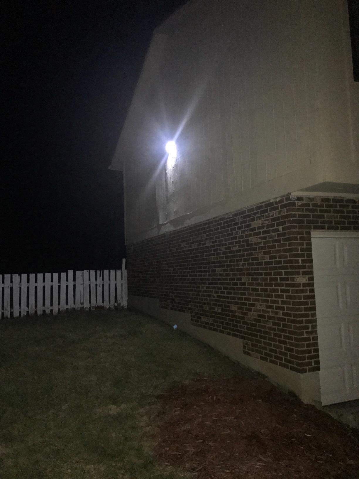 天黑时,背景氛围灯常亮;8米之内有人经过,主照明灯全亮25秒,人走后灯维持80%亮度。