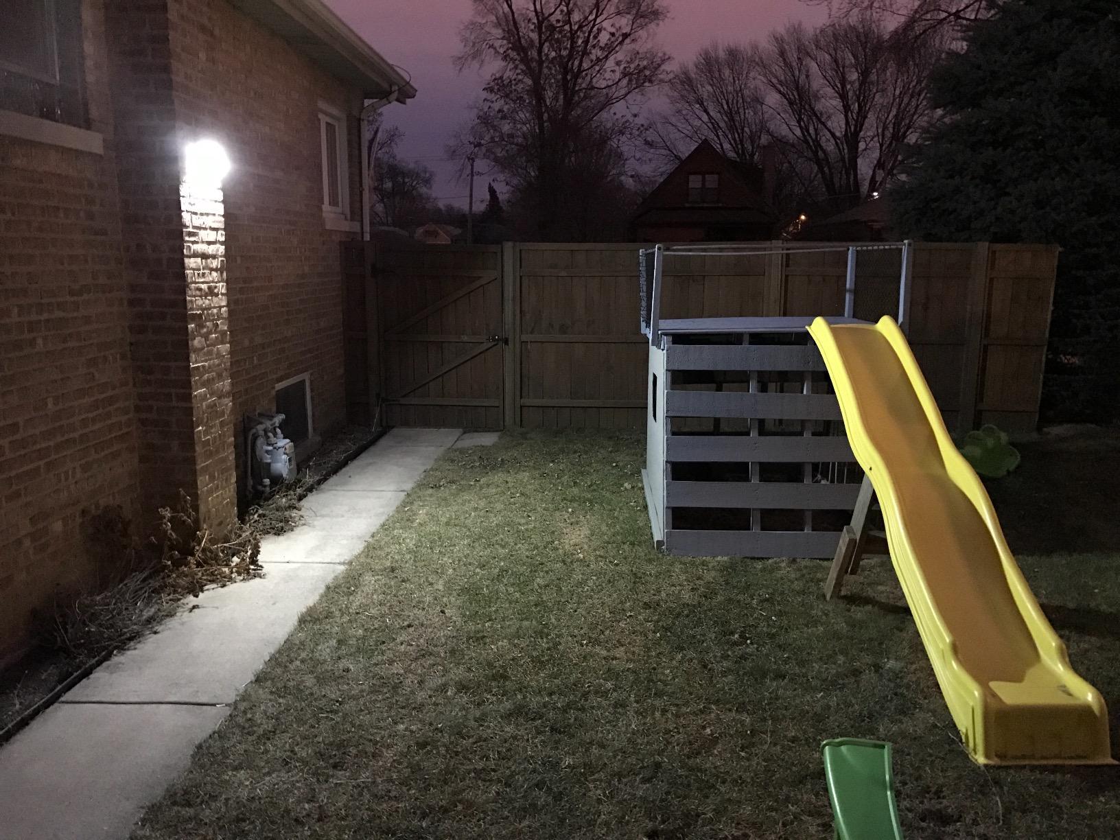 天黑时,背景氛围灯常亮;8米之内有人经过,主照明灯全亮25秒,人走后灯维持20%亮度。